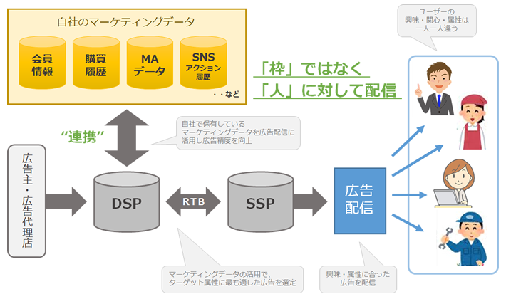 DSPのアルゴリズムによる配信に依存するだけでは必ずしも広告配信が最適化されているとは言えない中で、マーケティングデータとの連携は最適化のカギとなるだろう。